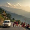 A vibrant and picturesque digital travel image for 'Guntur to Nepal Tour Package', highlighting popular Nepal destinations like Kathmandu, Pokhara, and Lumbini.